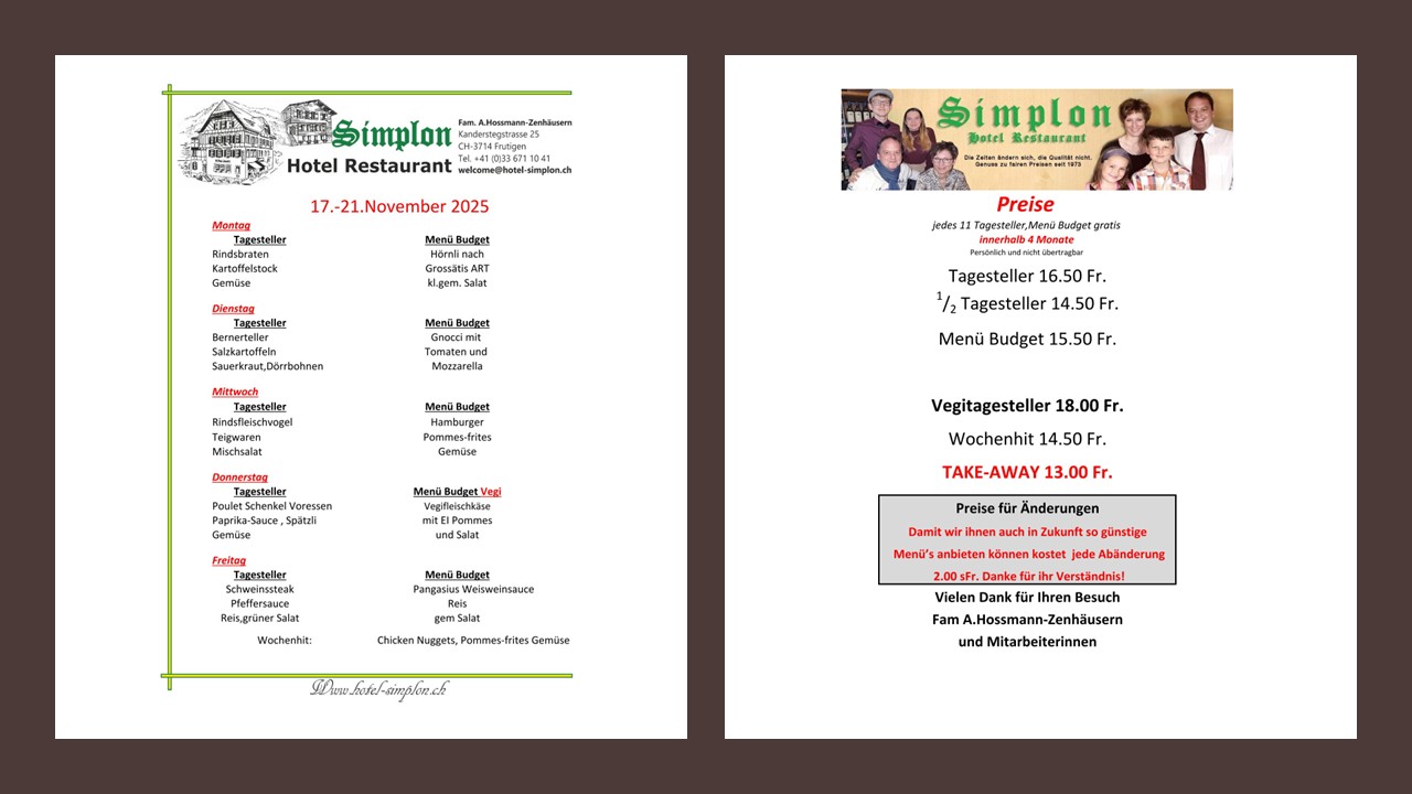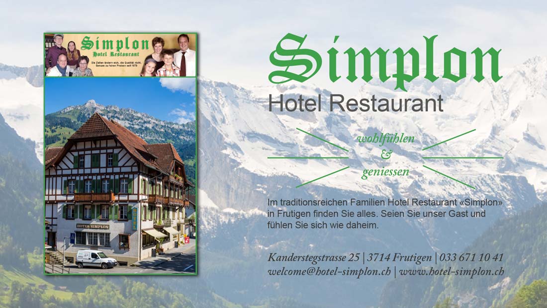 … at the traditional family-run Hotel Restaurant „Simplon“ in Frutigen, you will find everything you need. Be our guest and feel at home.