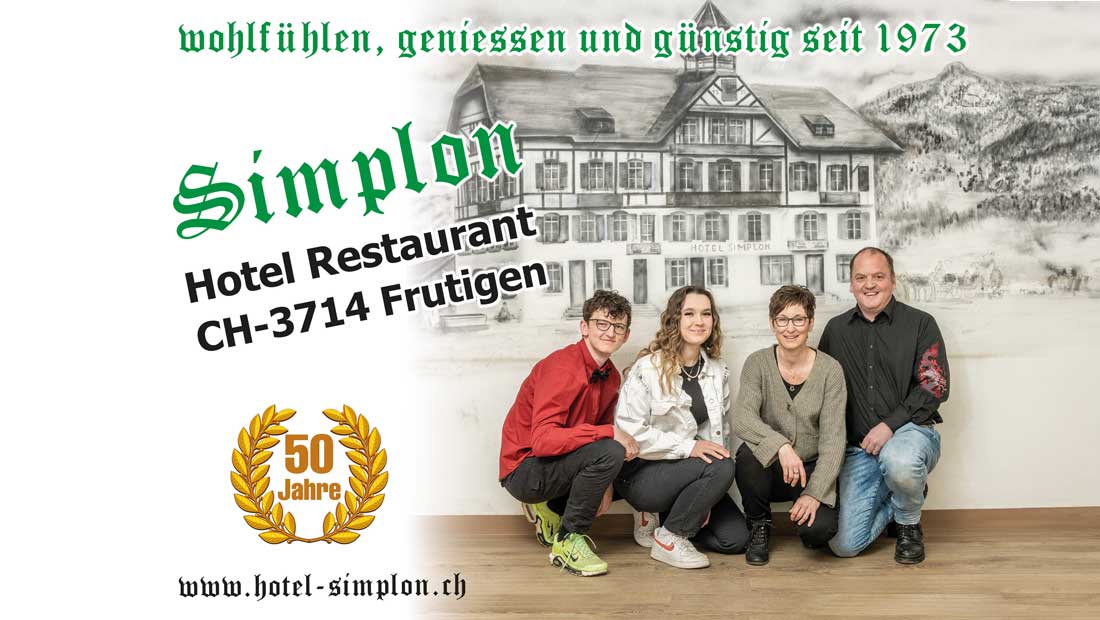 … im traditionsreichen Familien-Hotel Restaurant «Simplon» in Frutigen finden Sie alles. Seien Sie unser Gast und fühlen Sie sich wie daheim.